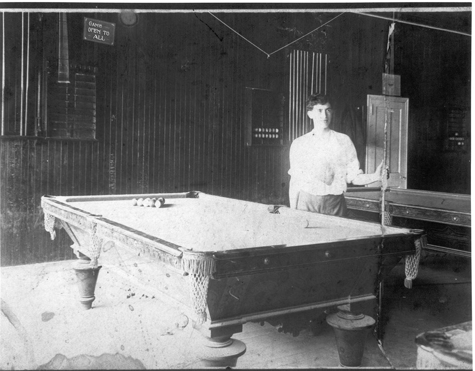 The Pool Hall - note the sign in the upper left-hand corner which reads: 'Game Open To All'.