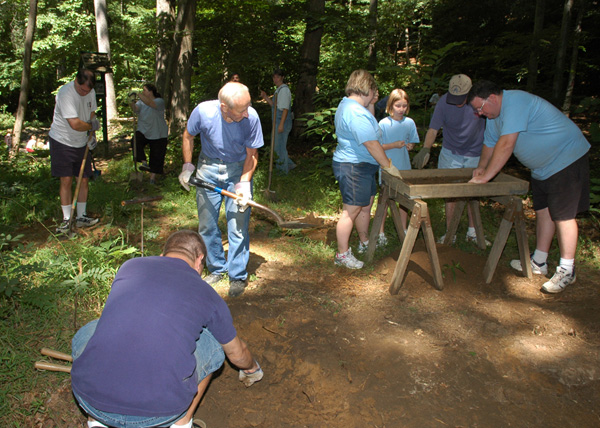 Eagle Scout Eric Kurtz (center) chose painting the smaller bridge across Hyde Run as his service project. He and his crew did a fine job! New Castle County Special Services Department supplied the paint and FOBS paid Eric $149.75 for brushes and other supplies.