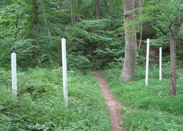 The Friends of Brandywine Springs marked the site with four white posts showing where the front wall bases were located and a sign with a photo of the Archway.