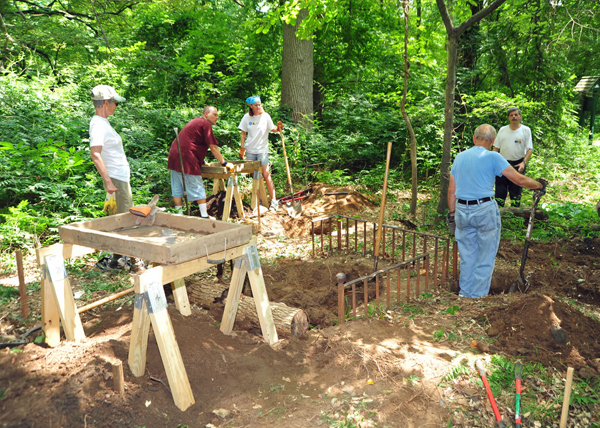 Councilman Tim Sheldon helped rebuild the building porch footers on the Ladies Pavilion. Ed Lipka looks on. Thank you, Tim.